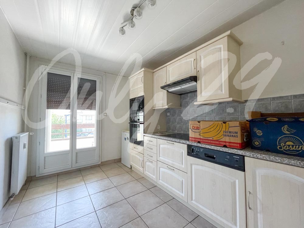 Rives proche gare, rue Bayard Le Chartreuse A, 2ème étage avec ascenseur. Appartement T4 (79 m2) : entrée, WC, cuisine, séjour, 3 chambres, buanderie, salle d'eau. Balcon. Cave. Local à vélos. Stationnement privatif dans la résidence.