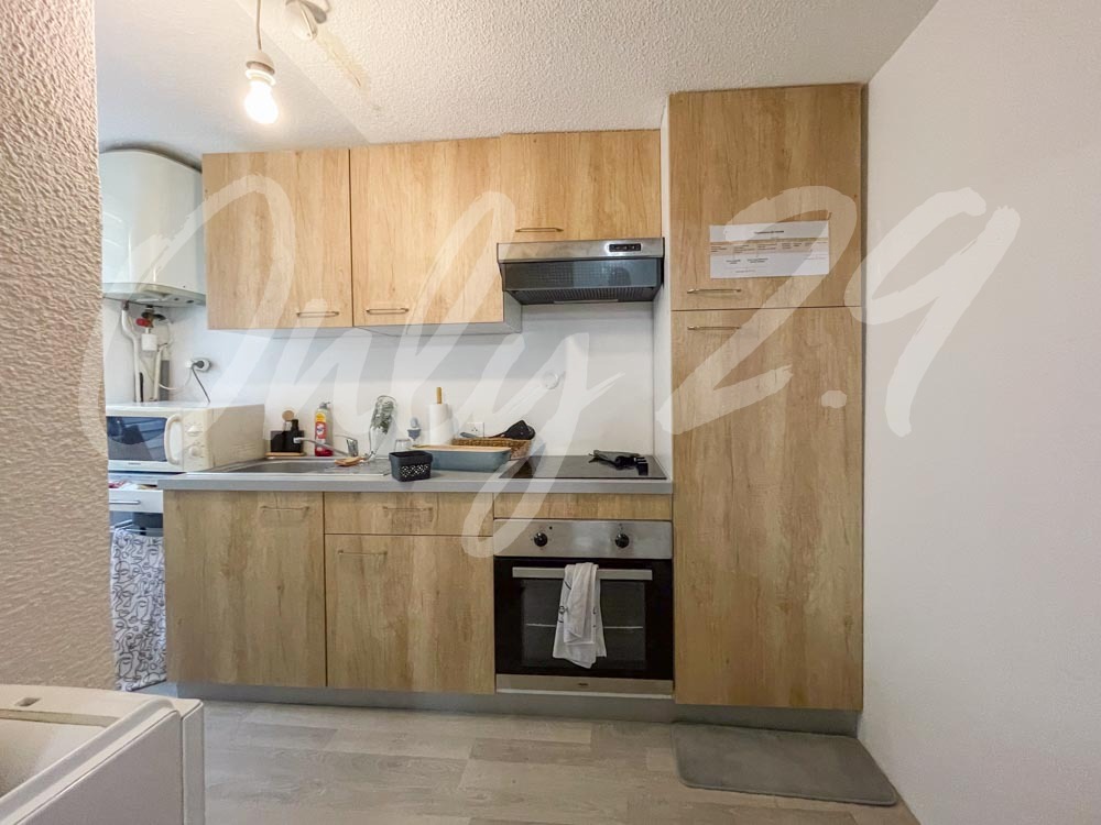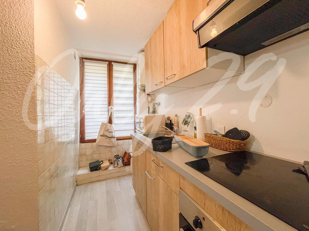 Voiron hyper centre, 12 Place St Bruno. Appartement T1bis (35,90 m2), au 2ème étage d'une petite copropriété, sans ascenseur : séjour, cuisine, salle d'eau - WC, espace nuit.