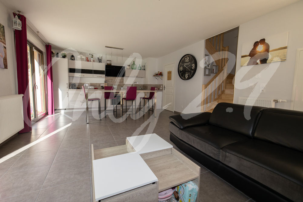 EXCLUSIVITE. Quartier calme et résidentiel. Petite résidence de 25 logements. Villa mitoyenne récente (environ 87 m2). RDC : entrée, séjour-cuisine, WC, cellier-buanderie. Etage : 3 chambres, salle de bain, WC. Garage (14 m2) en sous-sol. Terrasse et jardinet (31m2).