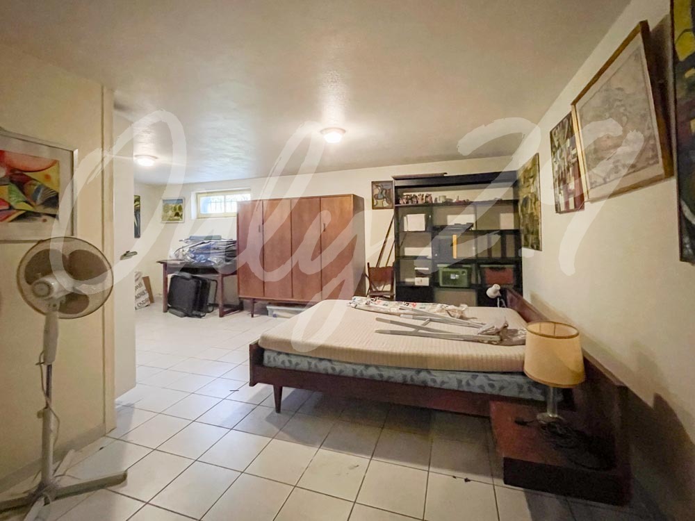 Sous-sol semi-enterré (103 m2) : garage, buanderie, chambre d'appoint, cave.